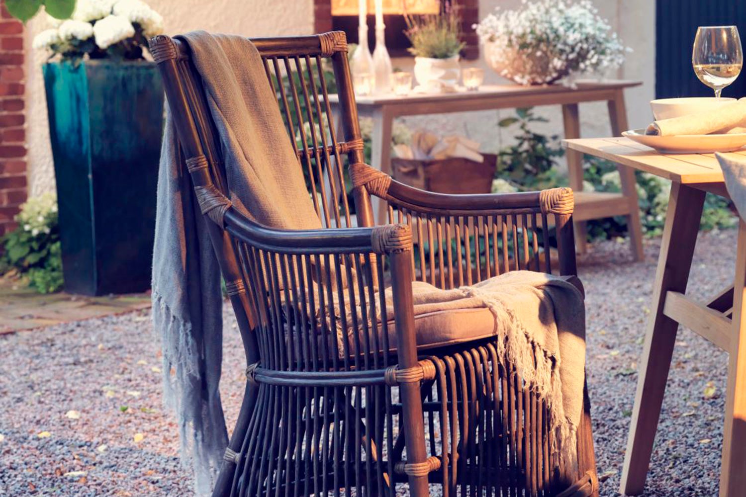 Våra möbler i naturrotting är flätade för hand med stor skicklighet. Bonete karmstol gör sig fint till våra bord i teak.