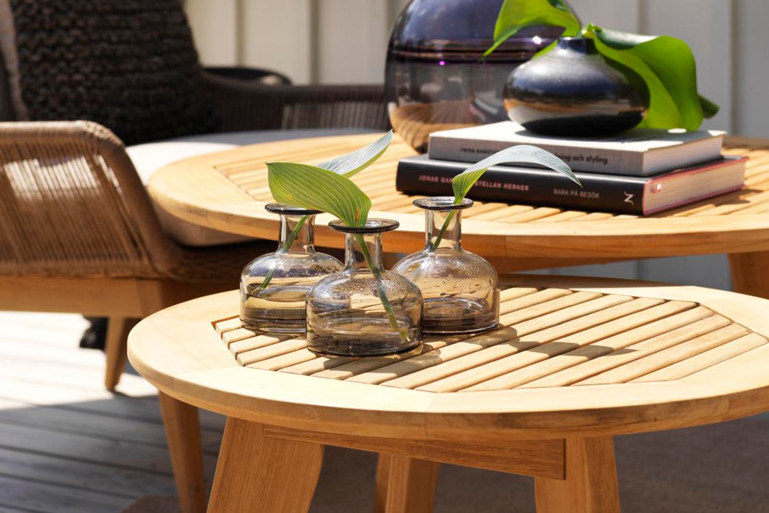 Var flexibel och möblera modernt - skjut in det lilla bordet, som är lägre, en bit under det större. Borden passar utmärkt även i möblemang inomhus.