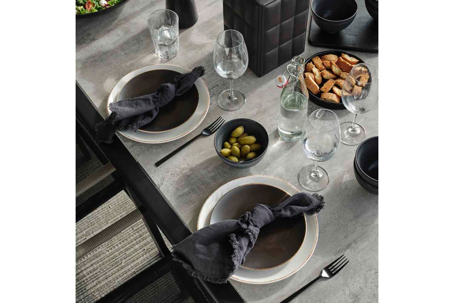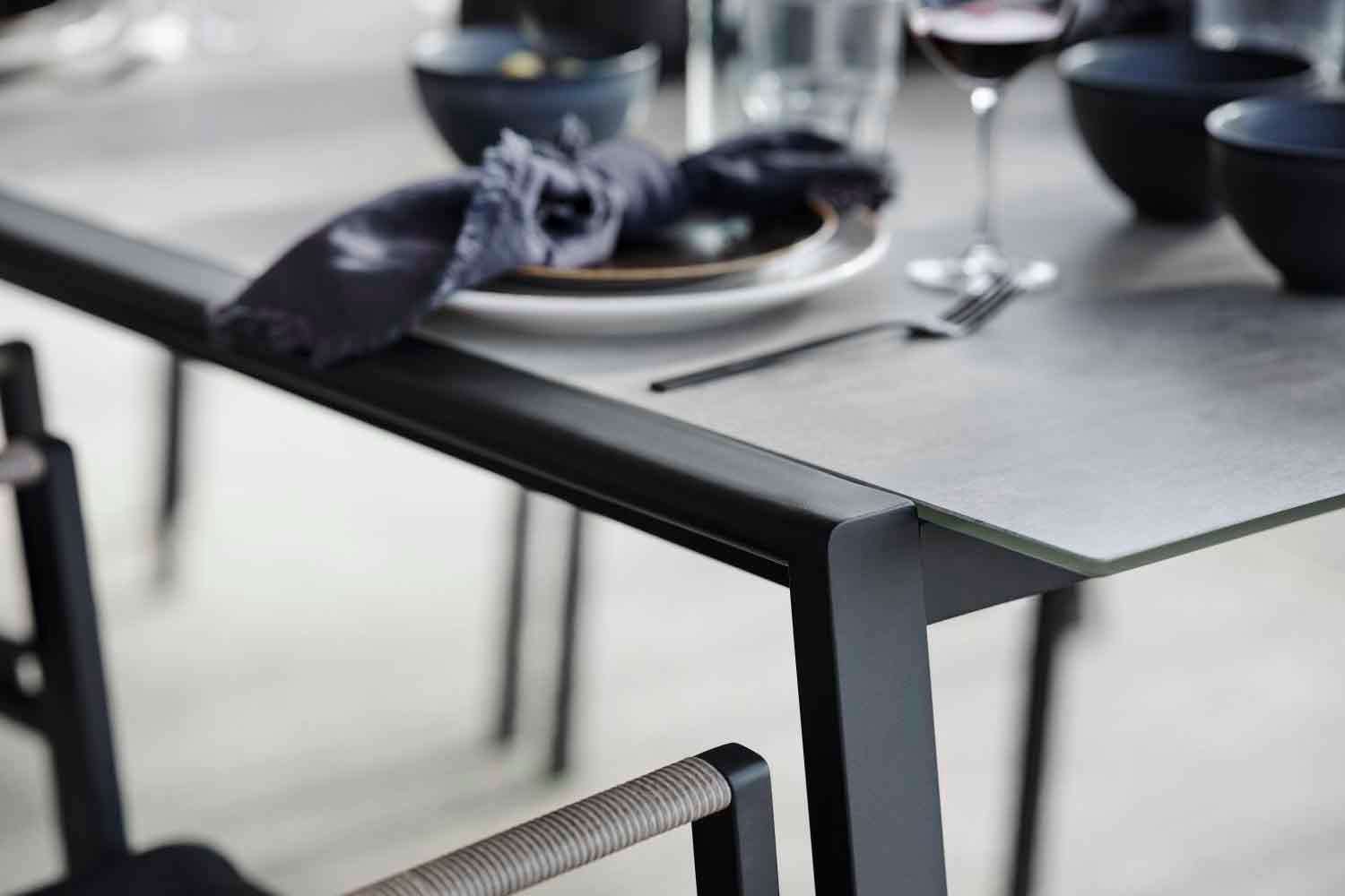 Lyra er en moderne og meget elegant serie i en dejlig blanding af materialer. Rammen er lavet af sort pulverlakeret rustfrit stål (304), perfekt til at modstå forskellige vejrforhold. Smukke detaljer af kunstig rattan på armlænene.