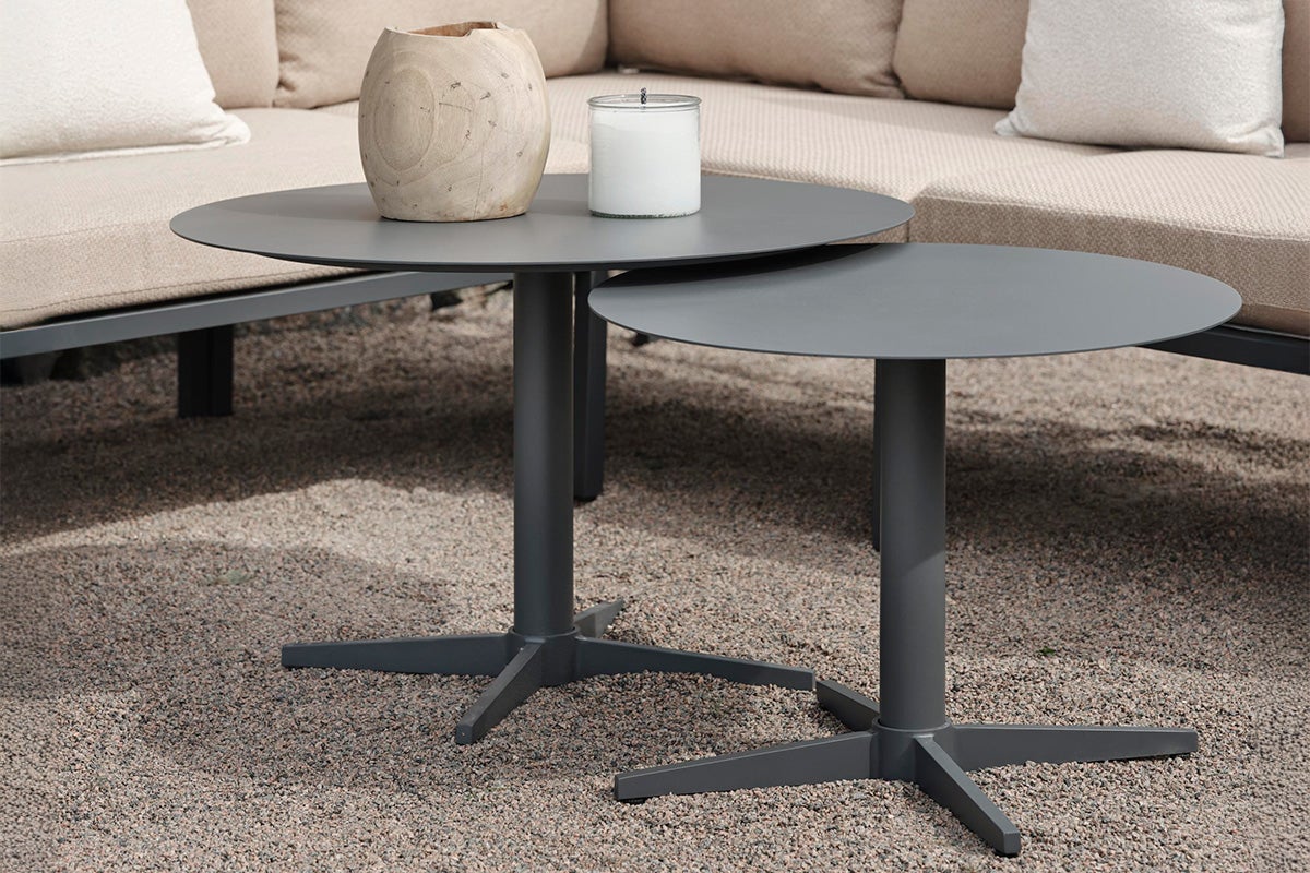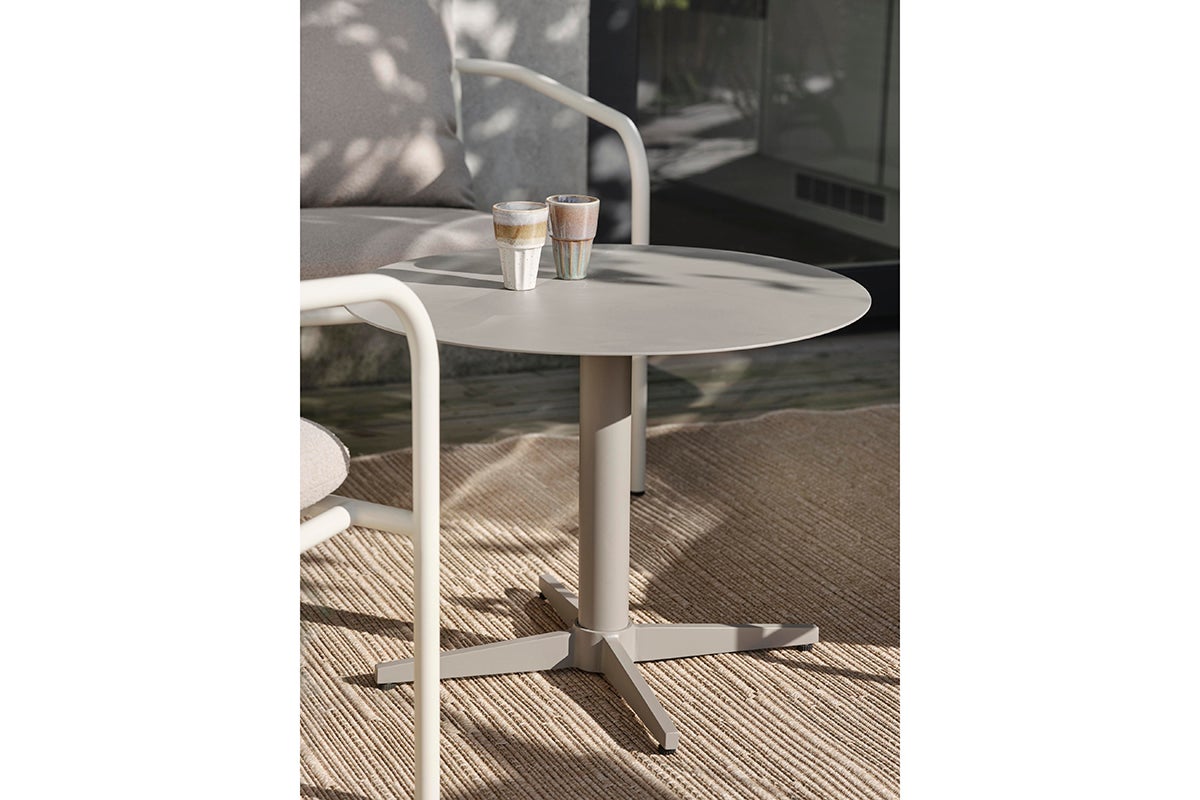 Simpelt og stabilt sofabord i aluminium med et moderne design med et twist. Kaste et blik på benet ned til basen, hvilket får tankerne til at vandre til markerne og vindmøllerne på landet. Vælg mellem tre forskellige størrelser og flere farver; let for dig at tilpasse efter behovene og stilen i dit hjem.