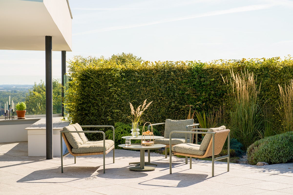 Bløde former og et naturligt inspireret rattan-look giver Motty både komfort og stil. Serien fås i farverne Zin Red, Nordic Green og Black. Det pulverlakerede stel har bløde overgange ved led og armlæn, hvilket forstærker det elegante look. Bløde Teddy-stofpuder fuldender følelsen og gør Motty lige så indbydende, som den er behagelig.