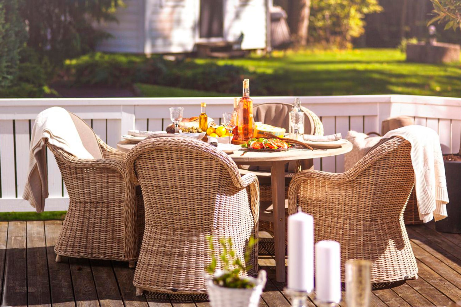Vår klassiska Paulina, mysiga och bekväma möbler tillverkade av 5,3 mm rund konstrotting flätad på en aluminiumstomme. Glasskivor till borden samt dynor i olefintyg till sittmöblerna ingår.
