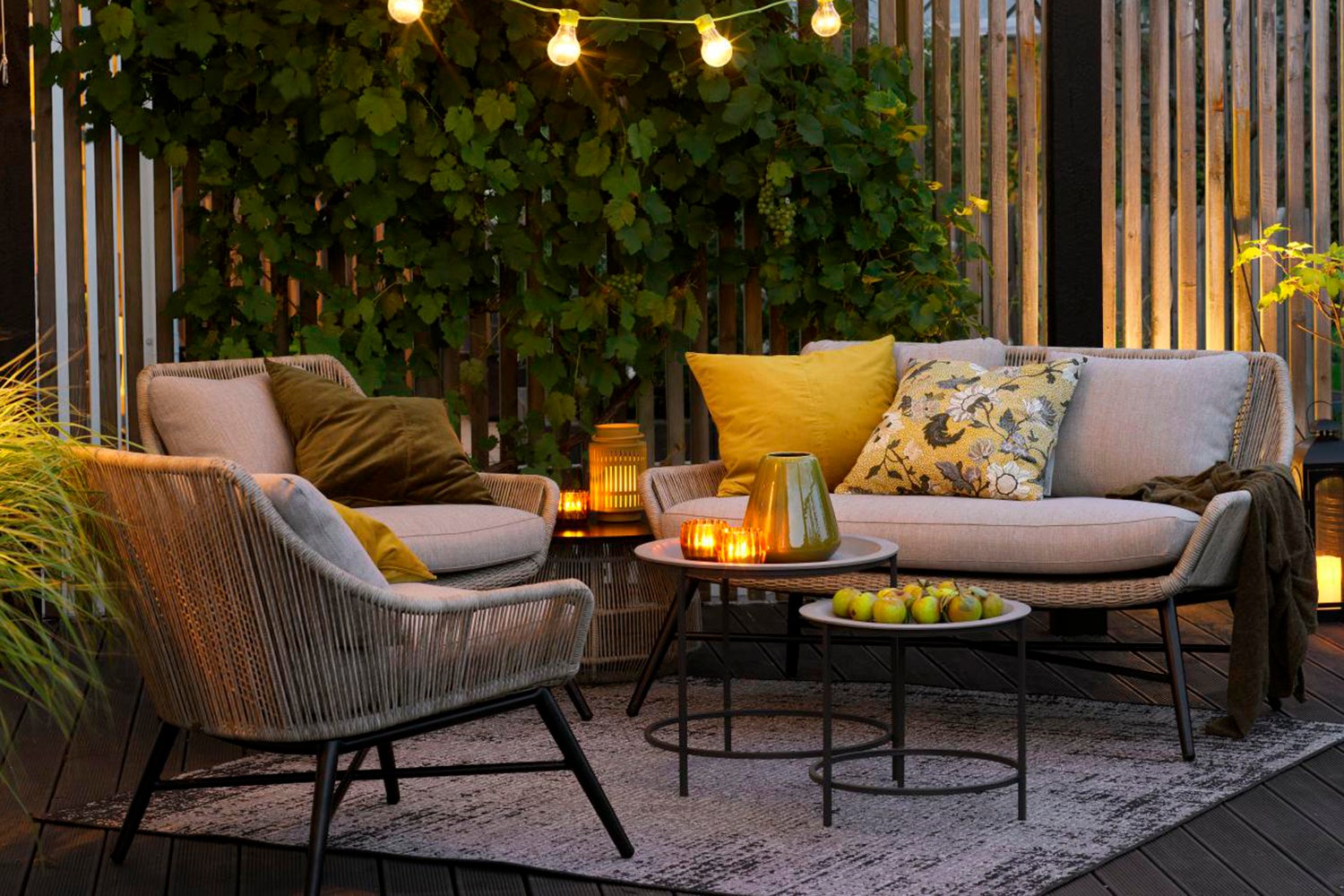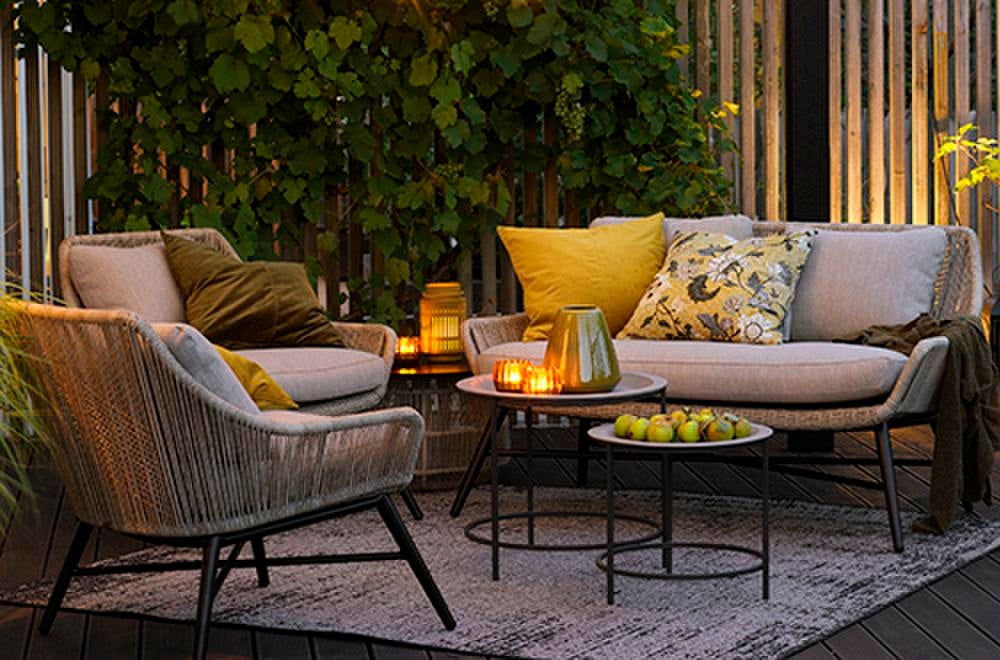 Soffgrupp med moderna, runda former i twistad rotting. Kan med fördel kombineras med bord från vår serie Pamir.