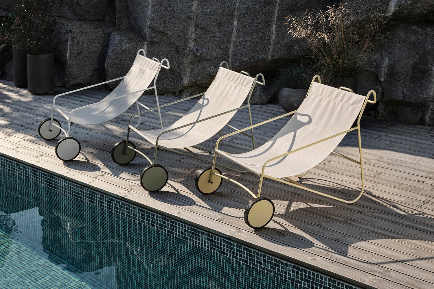 En legende, behagelig og iøjnefaldende møbel til poolkanten eller terrassen - Poul-stolen er umulig at passere uden at trække på smilebåndet. Den har en vejrbestandig aluminiumsramme i tre farver: elegant hvid, trendy Dusty Green eller en livlig, forfriskende Lemon.