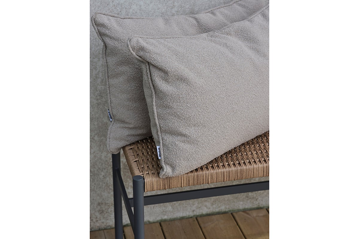 Premiumhynde af højeste kvalitet, fyldt med blødt syntetisk dun og med et yderstof i bouclé-inspireret stof af genanvendt polyester.