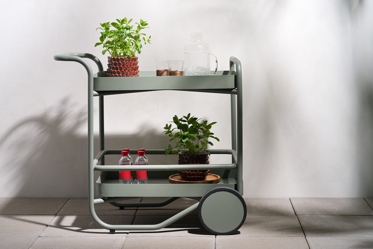 Mere end et serveringsbord – Trolly er et multifunktionelt statement piece til moderne udendørsliv. Inspireret af skandinavisk design kombinerer den bløde linjer med smart funktion. Brug den som serveringsvogn, sidebord eller løft bakkerne af for at servere med det samme. Harmoniske overgange mellem karrosseri, skiver og hjul løfter det alsidige design. Design: Johan Skoogh.