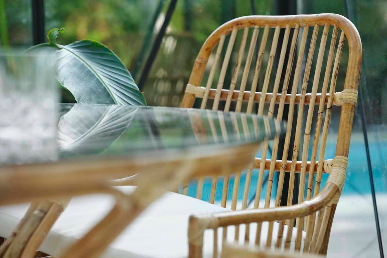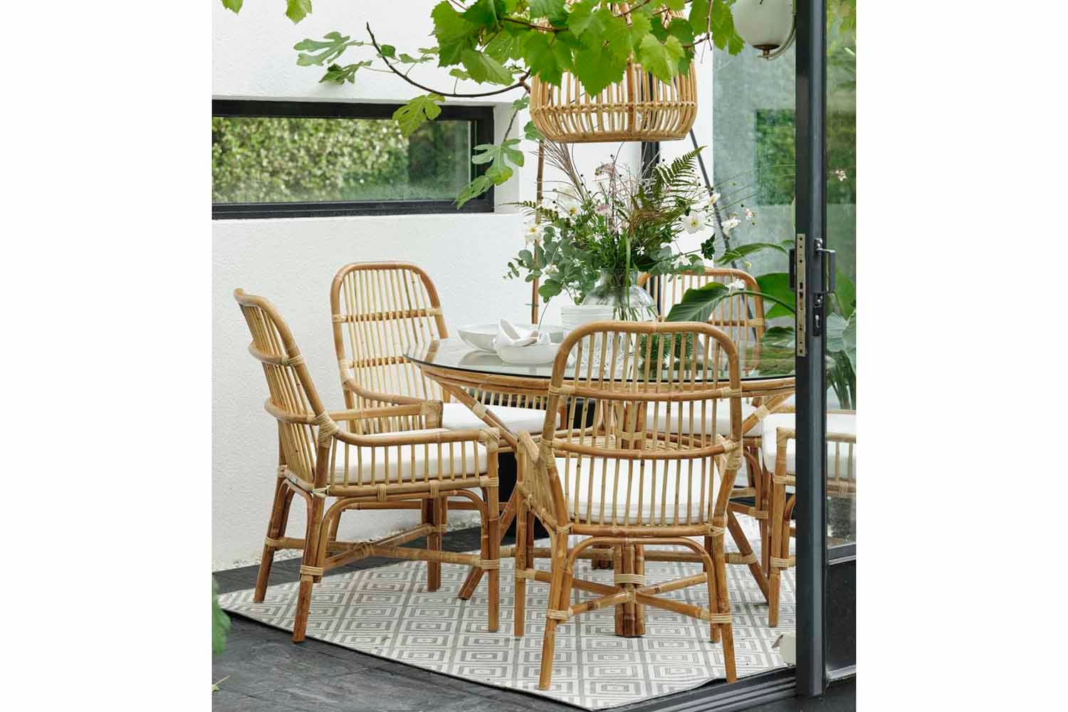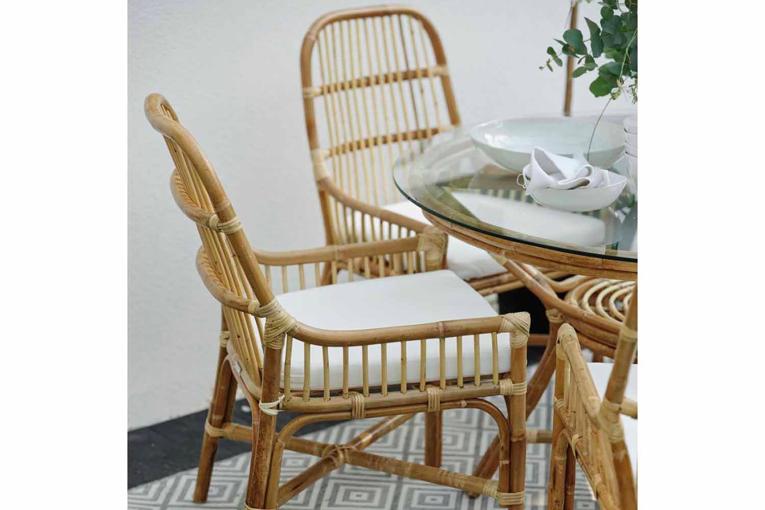 Naturrotting är flätad rotting där skalet har behållits vilket ger en mer naturlig färg och naturliga oregelbundenheter. Möbler i rotting bör placeras under tak.