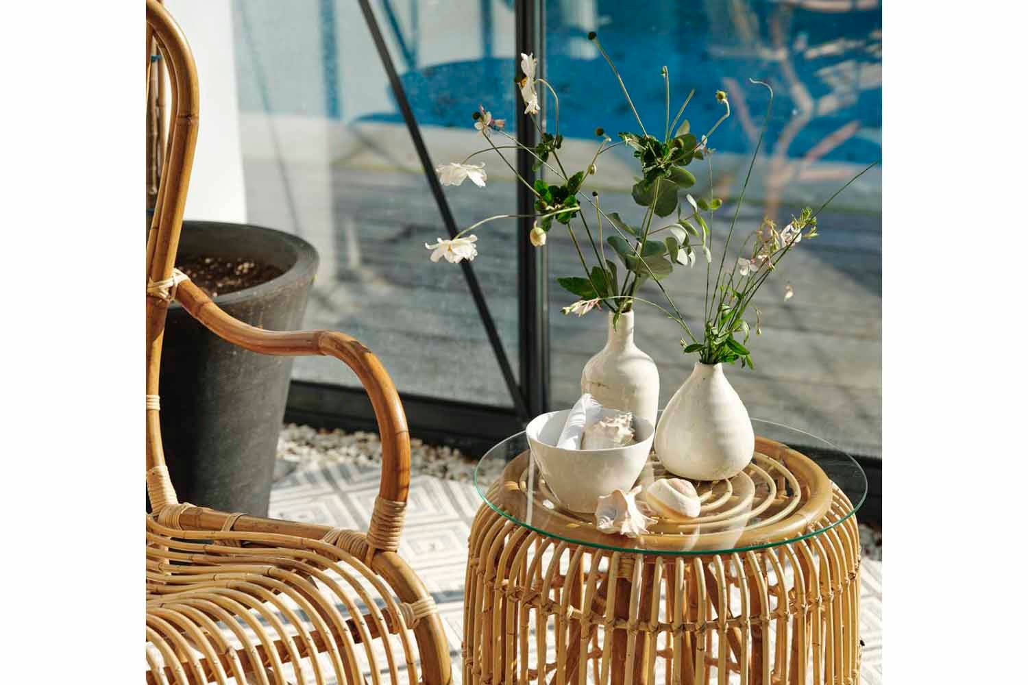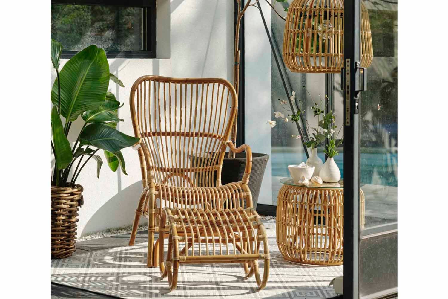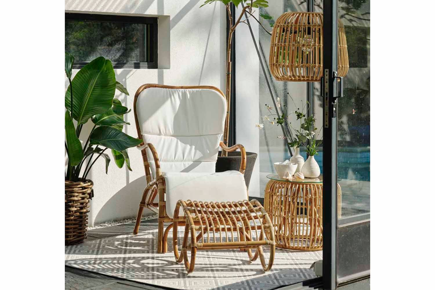 Naturrotting är flätad rotting där skalet har behållits vilket ger en mer naturlig färg och naturliga oregelbundenheter. Möbler i rotting bör placeras under tak.
