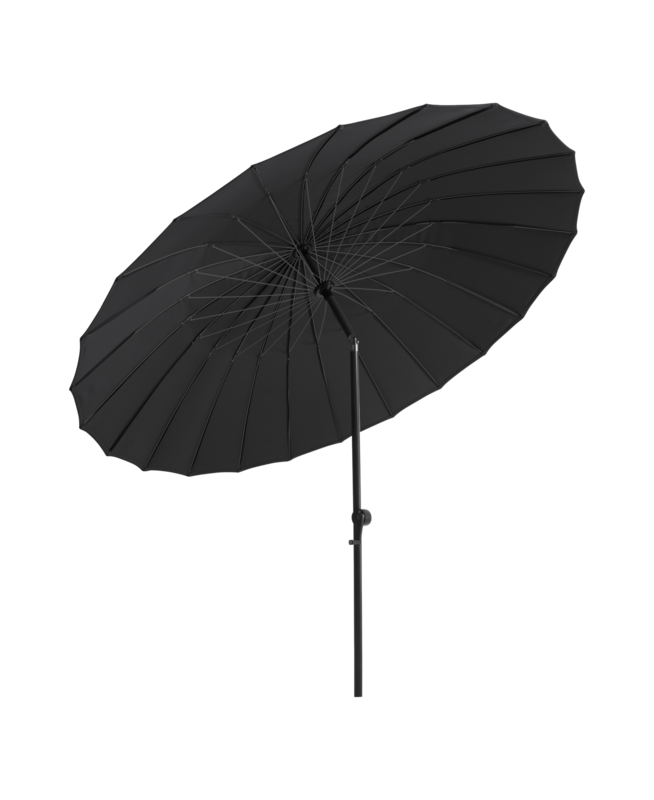 Shanghai er en moderne parasol med en generøs størrelse og 50+ UPF-beskyttelse mod solens ultraviolette stråler. De 2,7 meter i diameter skaber god beskyttelse mod solen. Parasollen har et robust håndsving og en stang, der kan vippes, hvilket gør det nemt at opnå svalende skygge. Når den vippes, kan man se det smukke stålstel – form og funktion i harmoni. Denne parasol giver både stil og funktion til dit uderum. Samlet set alle de funktioner, der er forbundet med en klassisk Shanghai parasol.