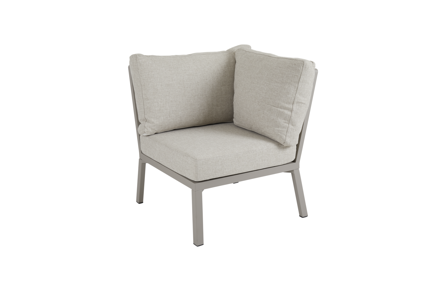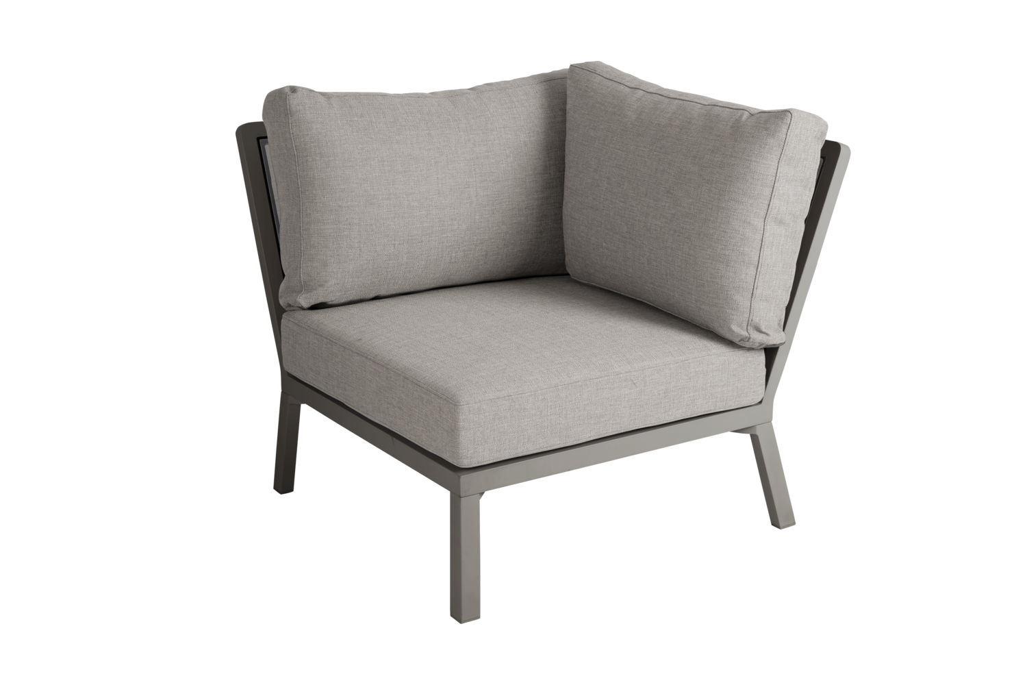 Den populære Samvaro-serie er nu blevet udvidet med flere nye lounge-dele for endnu flere kombinationsmuligheder. Denne hjørnedel har behagelige hynder i olefinstof med vandafvisende for. Den lidt lavere højde er perfekt til både afslapning og kaffestunder. Findes i to farvekombinationer.